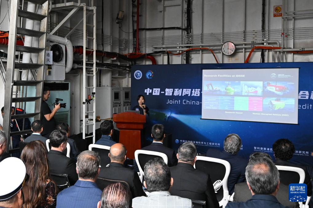 启航仪式当天在停靠于智利中部瓦尔帕莱索港的中国“探索一号”科考船上举行。